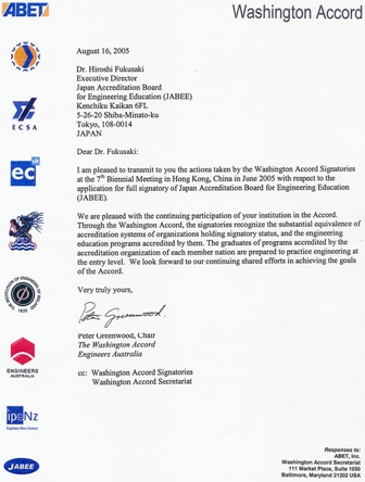 私達はJABEEがワシントン協定に引き続き参画されることを嬉しく思います。