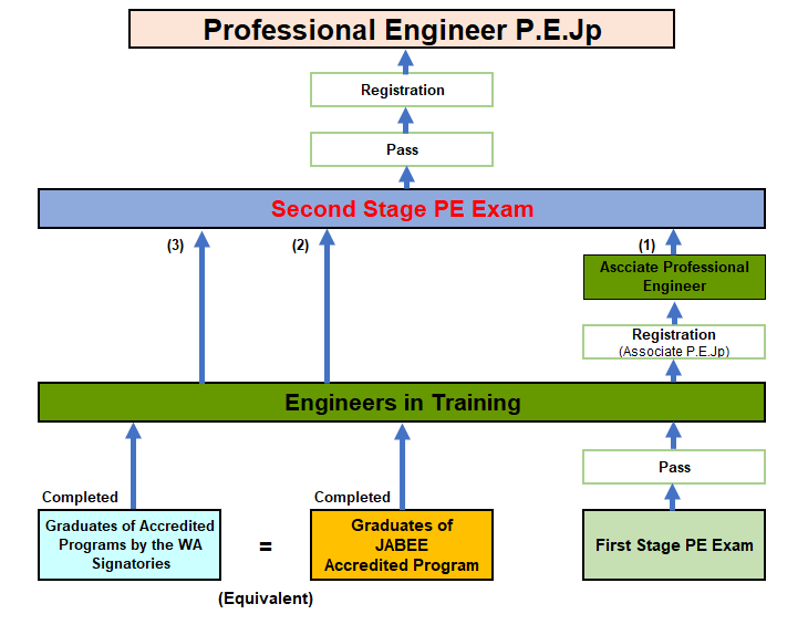 - a. Accredited programs by WA signatories: JABEE’s endorsement letter is required to take the Second Stage P.E. Exam,