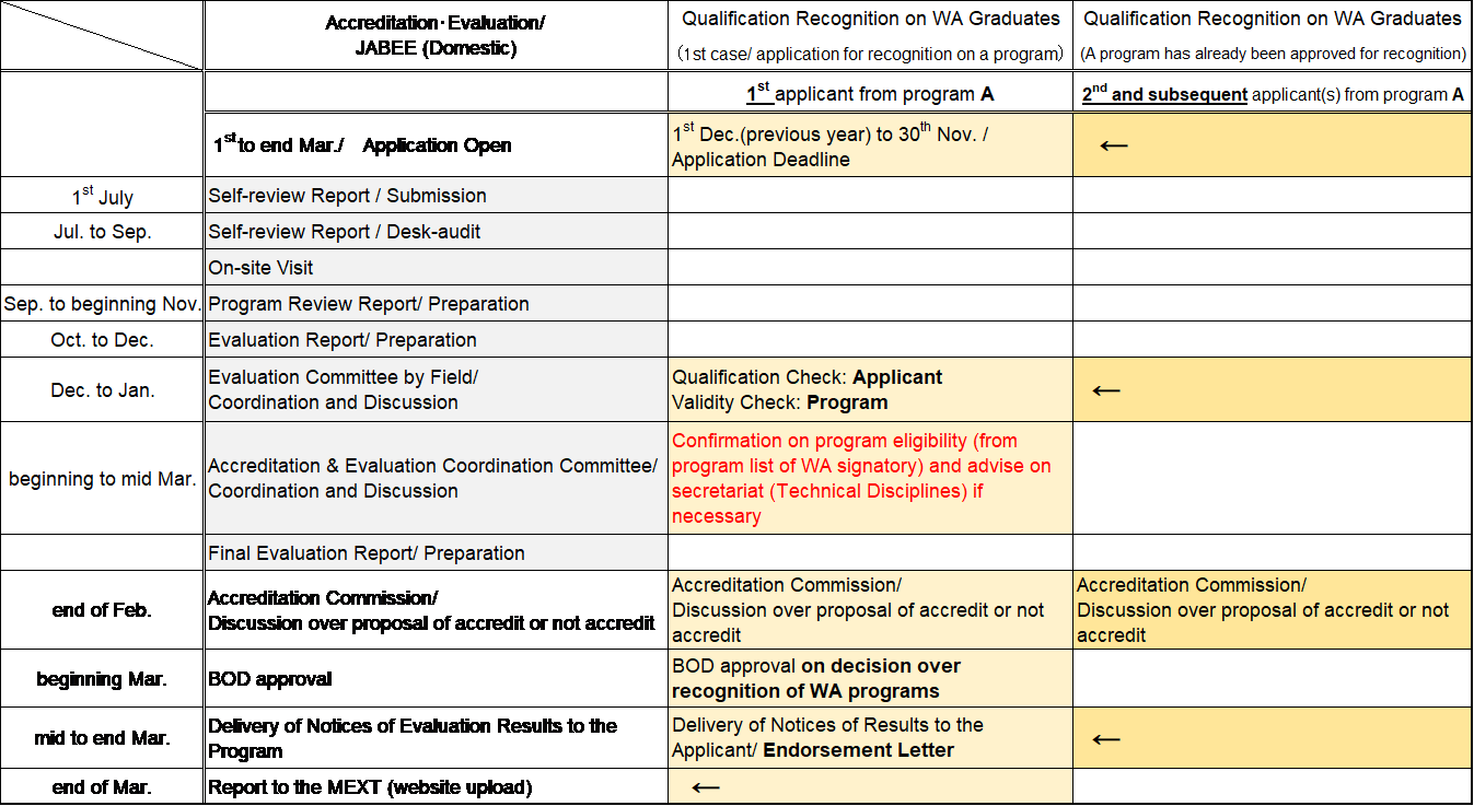 The following are the schedules & procedures comparison chart vis-à-vis JABEE accreditation cycle.