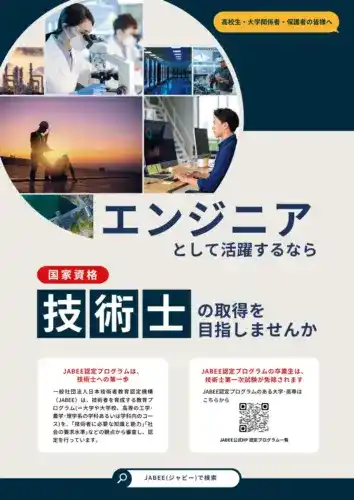 一般社団法人日本技術者教育認定機構(JABEE)は、技術者を育成する教育プログラムを「技術者に必要な知識と能力」「社会の要求水準」などの観点から審査し、認定する非政府系組織です。