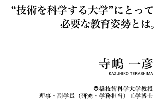高専からの編入生が学生の8割を占め、さらに多くの留学生を受け入れている、豊橋技術科学大学。副学長の寺嶋 一彦先生は、「多様な人々がものづくりの研究をする大学として、教育の質を確保するためにJABEE認定プログラムの受審は欠かせない」と言います。